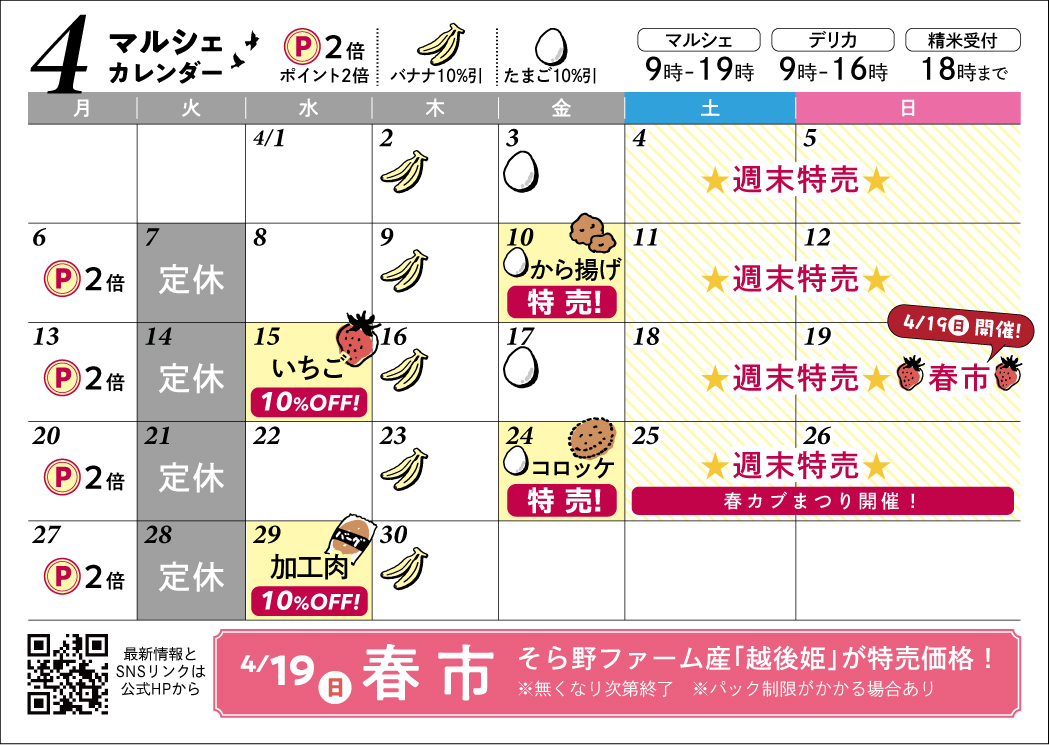 4月のマルシェカレンダー📅