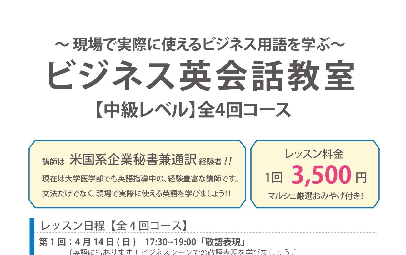 【全4回コース】ビジネス英会話中級クラス