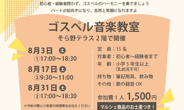 【8月開催】ゴスペル音楽教室