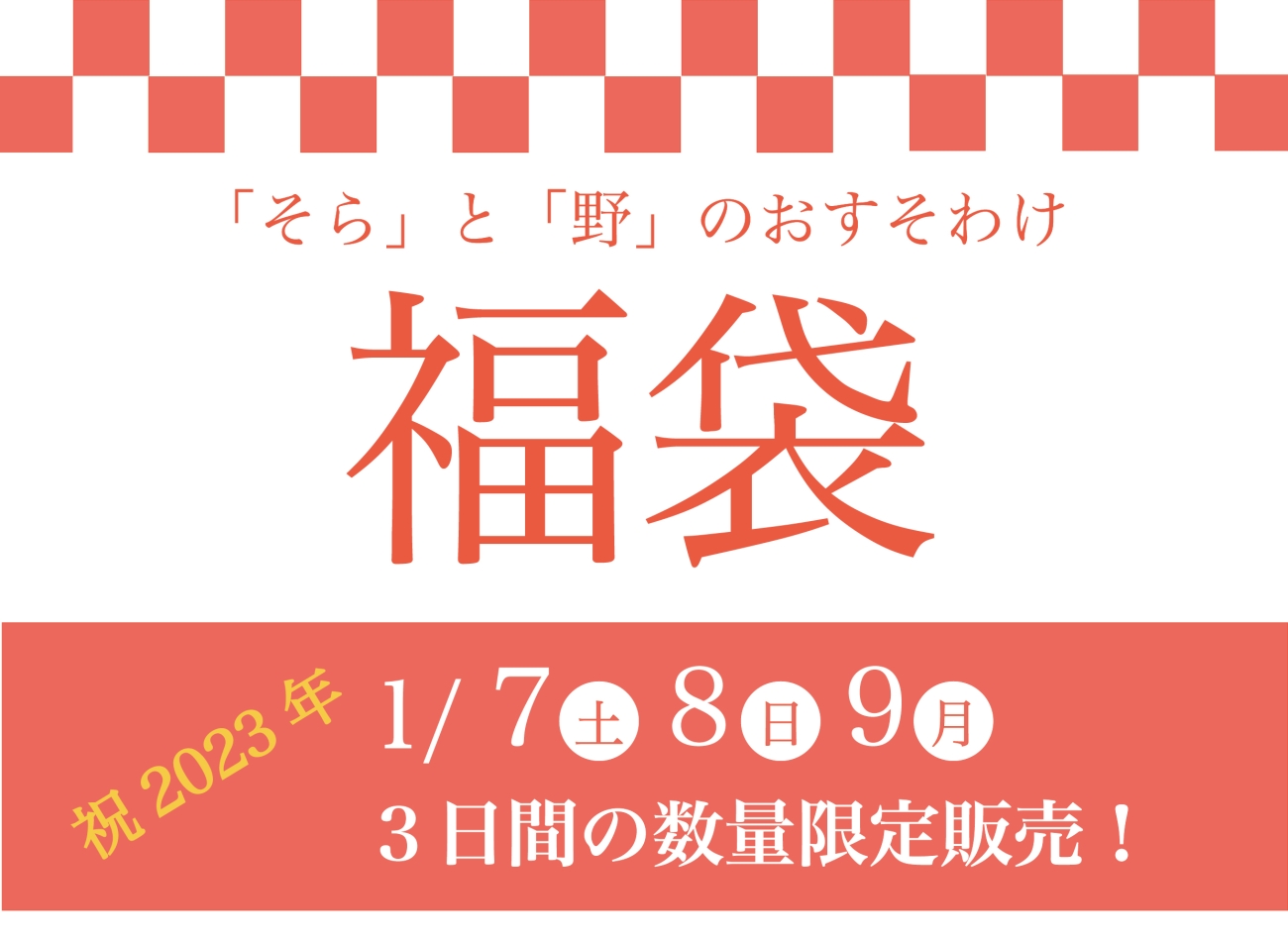 今週末7日、8日、9日は福袋販売!