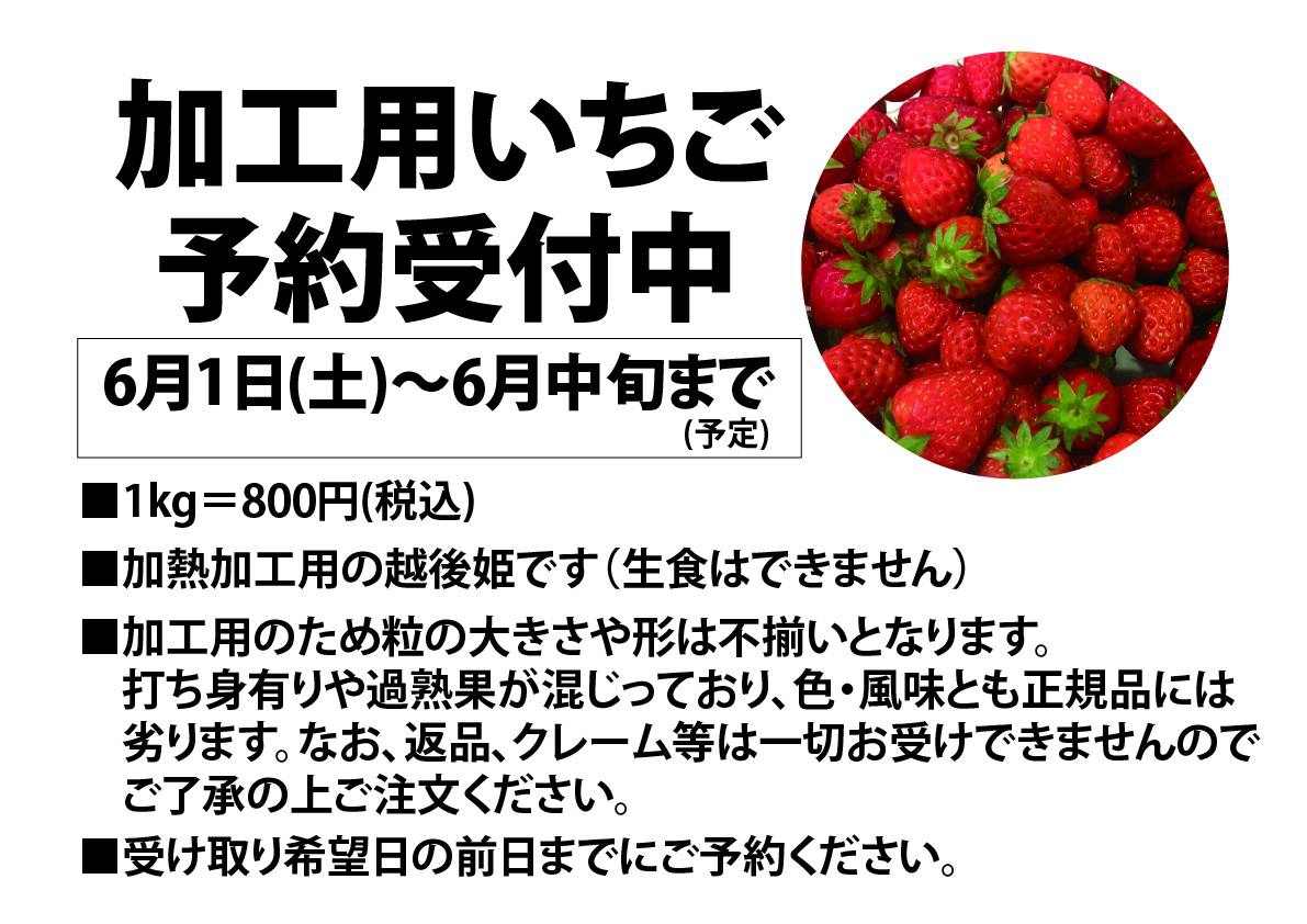 加工用いちごの予約受付中です