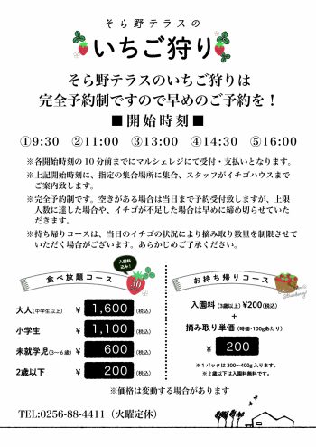【いちご狩り価格改訂お知らせ】