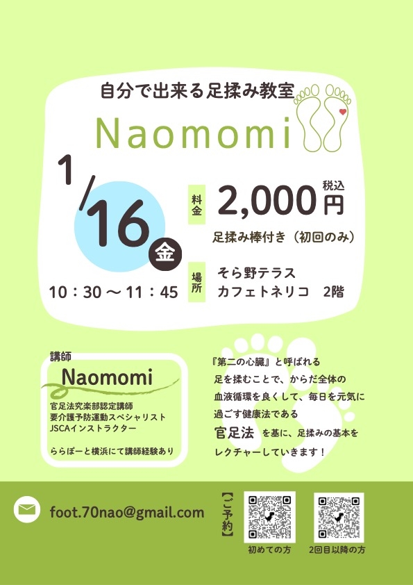 2026年1月16日(金)『開催!自分で出来る足揉み教室』