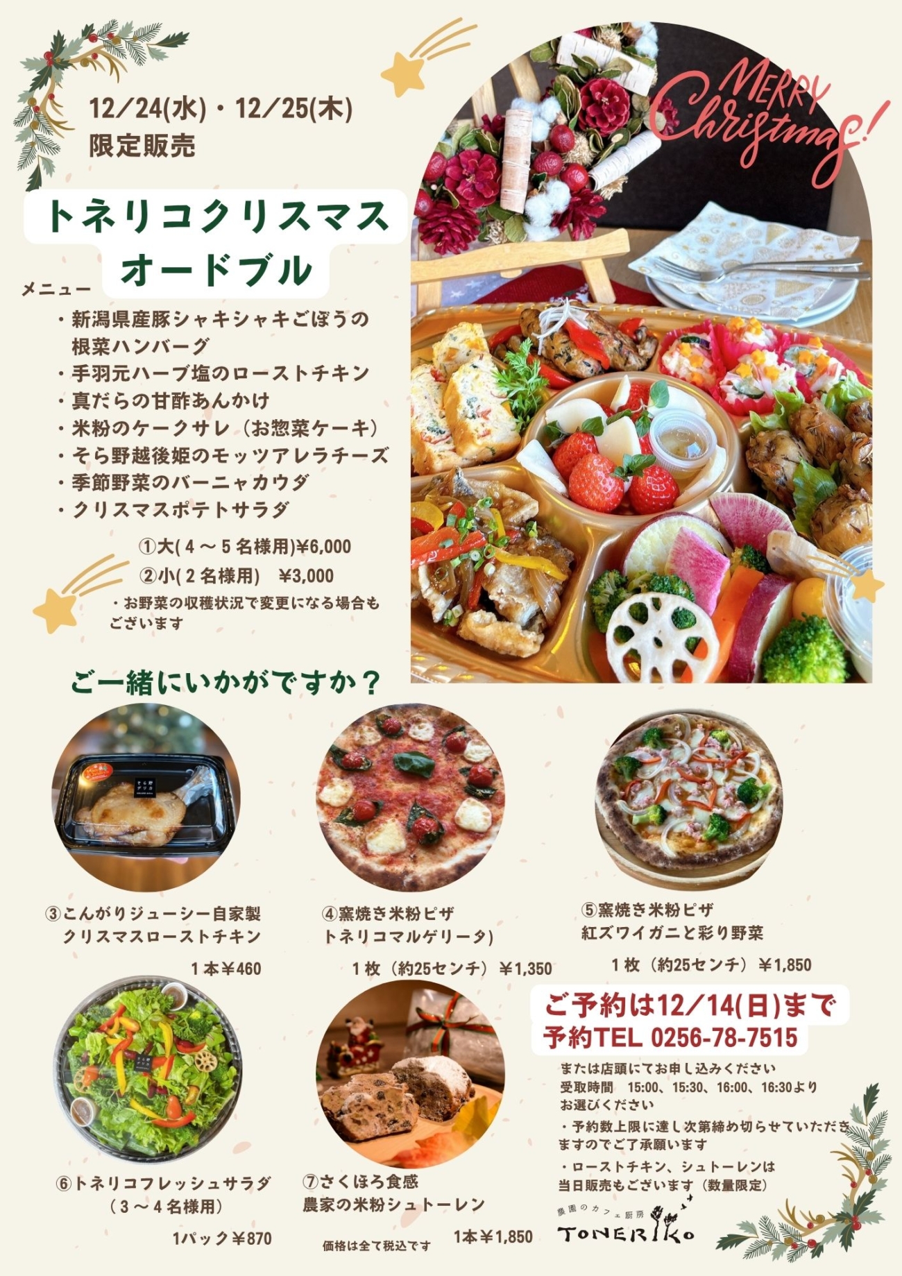 2025.11.14, Pick up クリスマスオードブル2025 お待たせしました!農園のカフェ厨房トネリコのクリスマスオードブルご予約開始します。皆様においしく楽しんでもらえるようスタッフみんなで頑張ります! ご予約は 農園のカフェ厨房トネリコ 直通TEL 0256-78-7515 or 店頭まで « 過去の投稿 新しい投稿 »