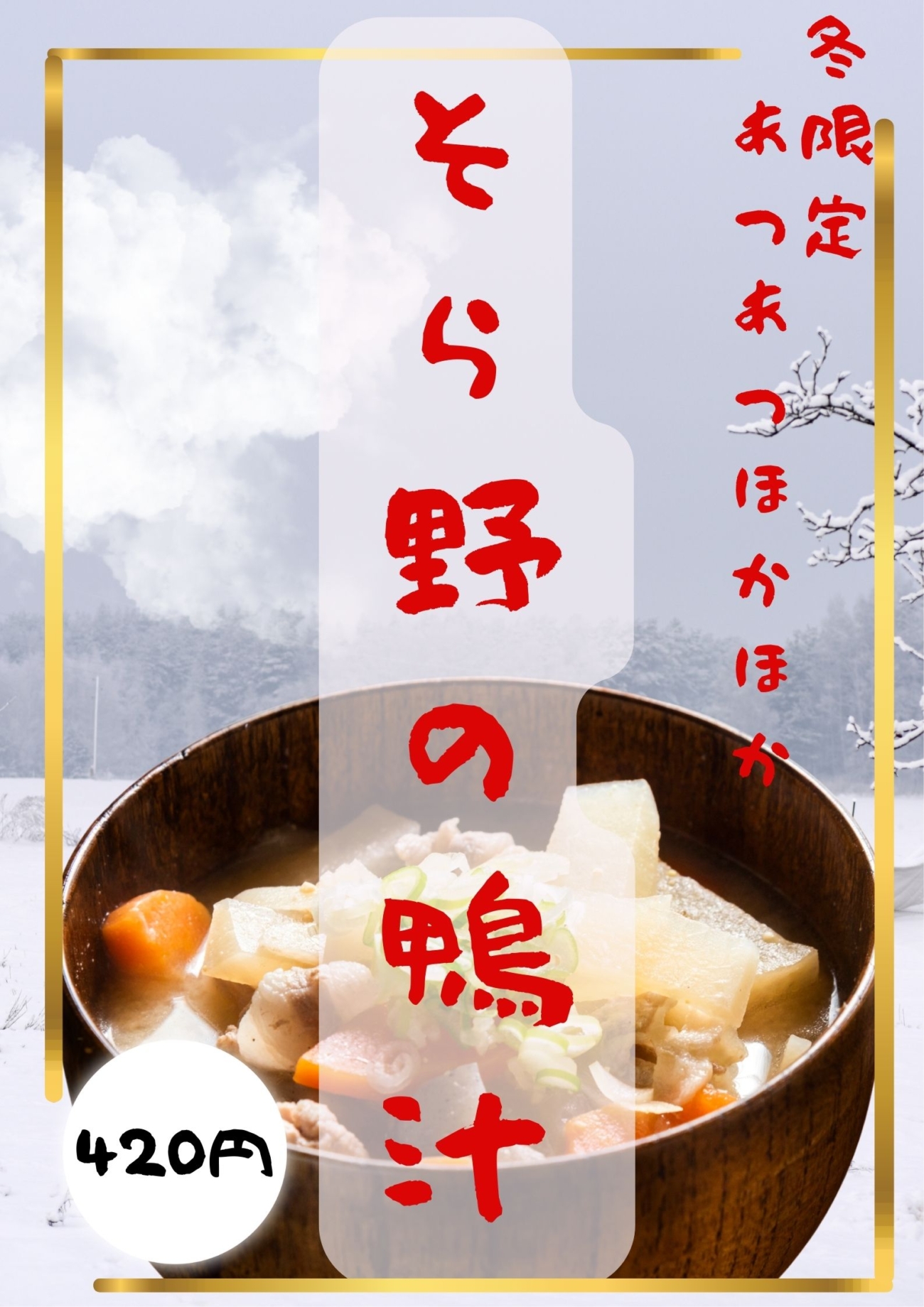 今シーズンも始まります。「そら野の鴨汁」